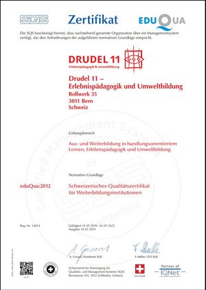 Auch für die nächsten drei Jahre ist Drudel 11 eduQua-zertifiziert. Schon seit 2007 bescheinigt uns SQS und der Schweizerische Verband für Erwachsenenbildung mit dem eduQua-Zertifikat unsere Bildungsqualität. Darauf sind wir stolz - noch wichtiger ist es aber, dass wir diese Qualität in unseren Lehrgängen und Seminaren immer wieder von Neuem leben und mit Begeisterung füllen. Auch das tun wir mit Freude und Überzeugung!